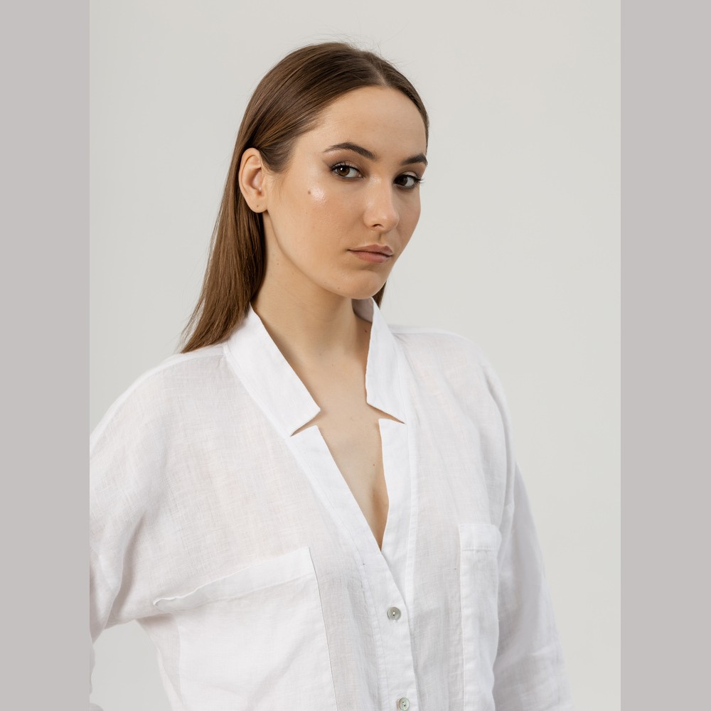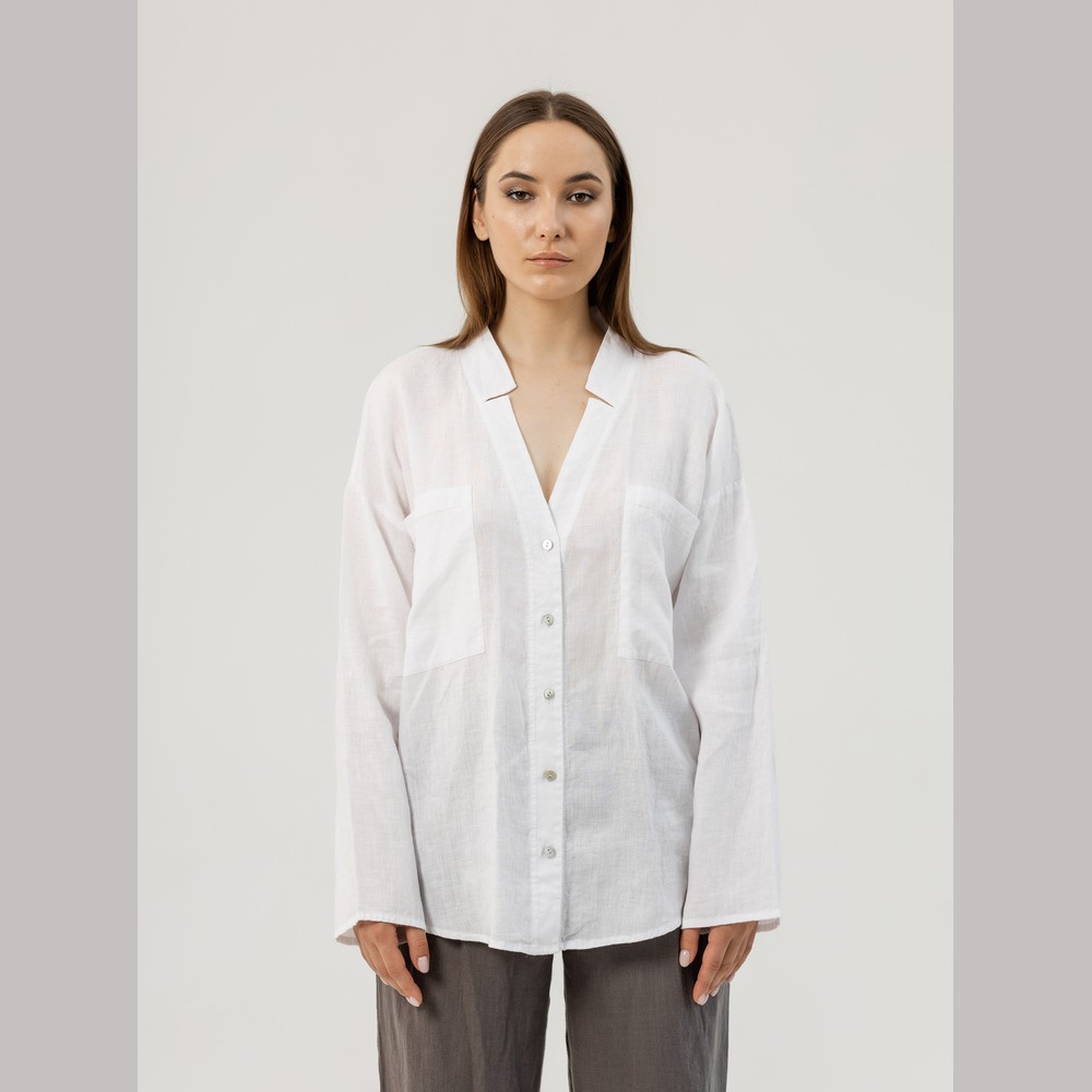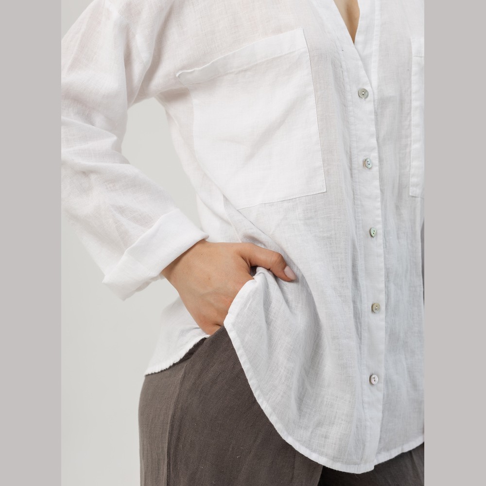 Стильная белая блузка с длинным рукавом изсмягченного 100% льна