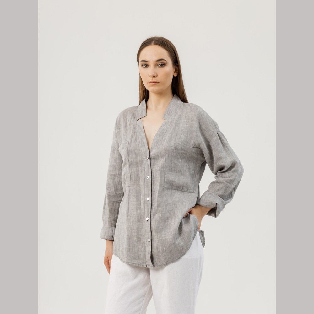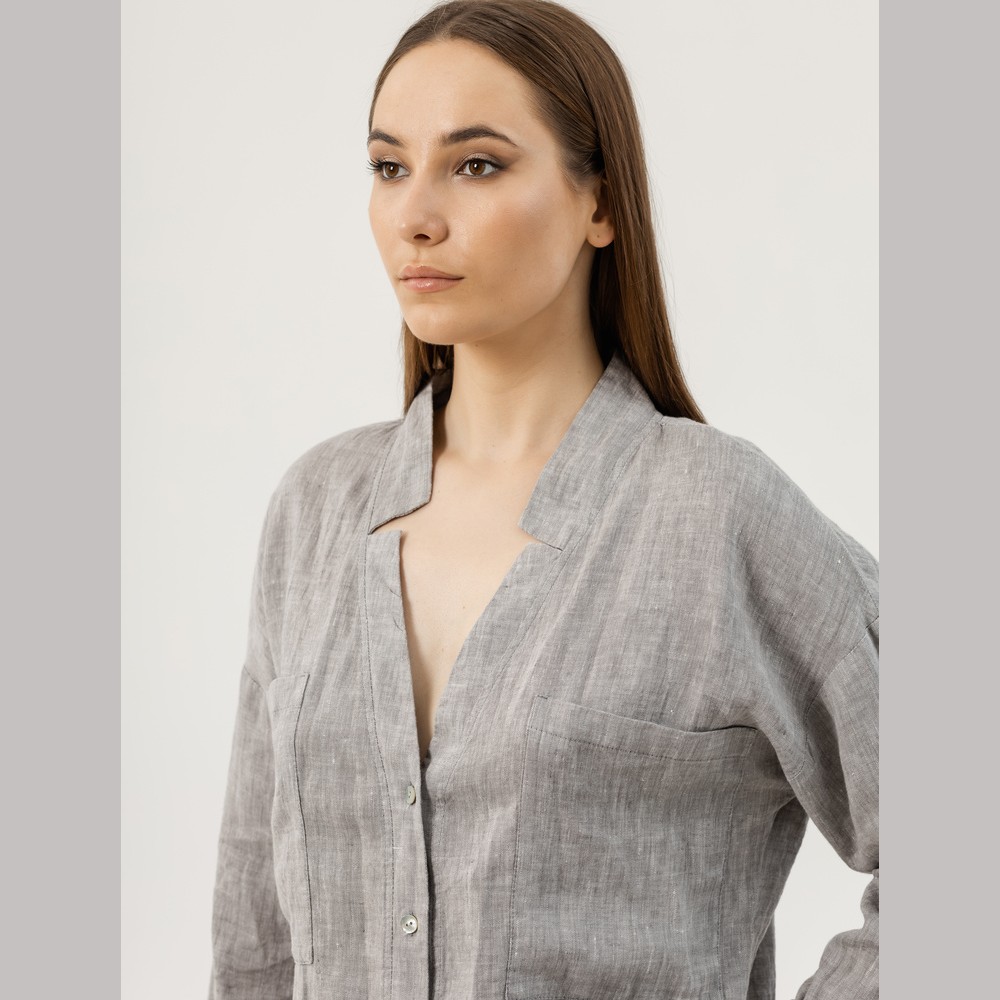 Стильная блузка-рубашка сдлинным рукавом из 100% умягченного льна