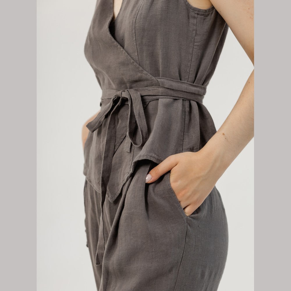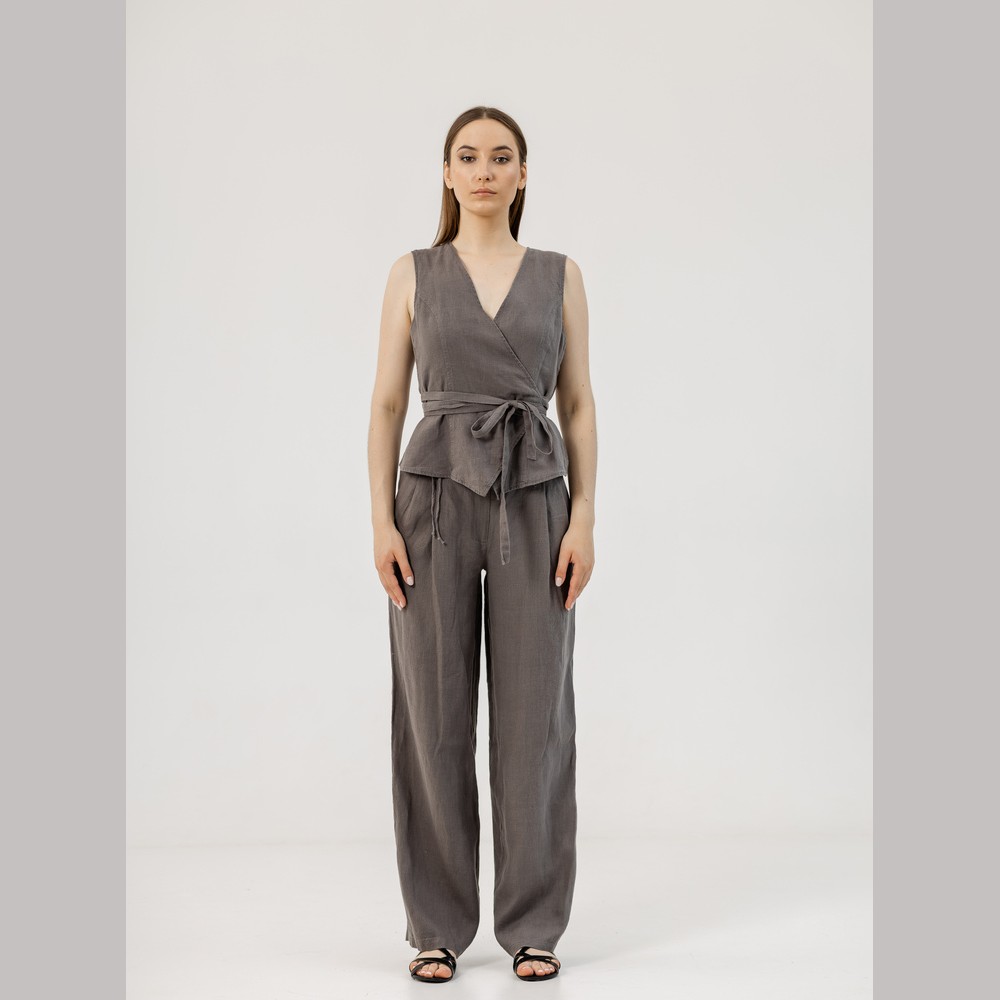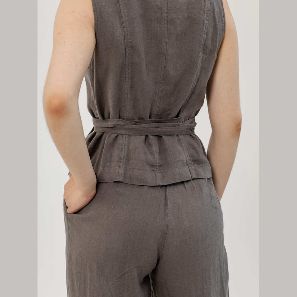 Стильный ассиметричный жилет из 100% льна с круговым поясом